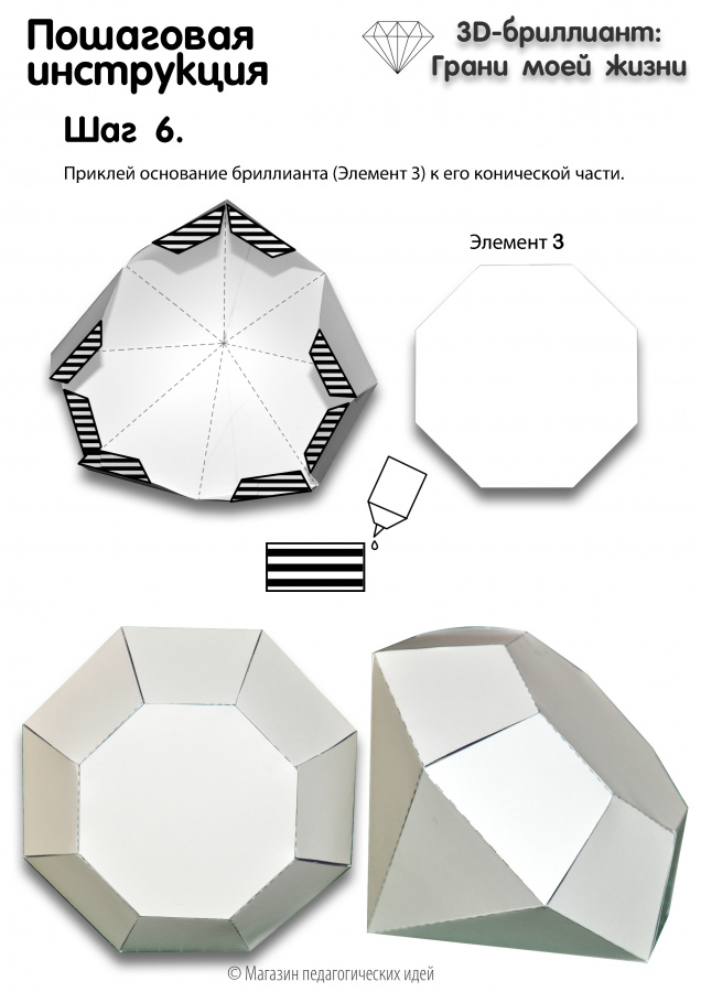 - файл в формате PDF (8 вариантов шаблонов полноразмерных бриллиантов + 1 шаблон на один лист А4 + подробная инструкция для распечатывания)
