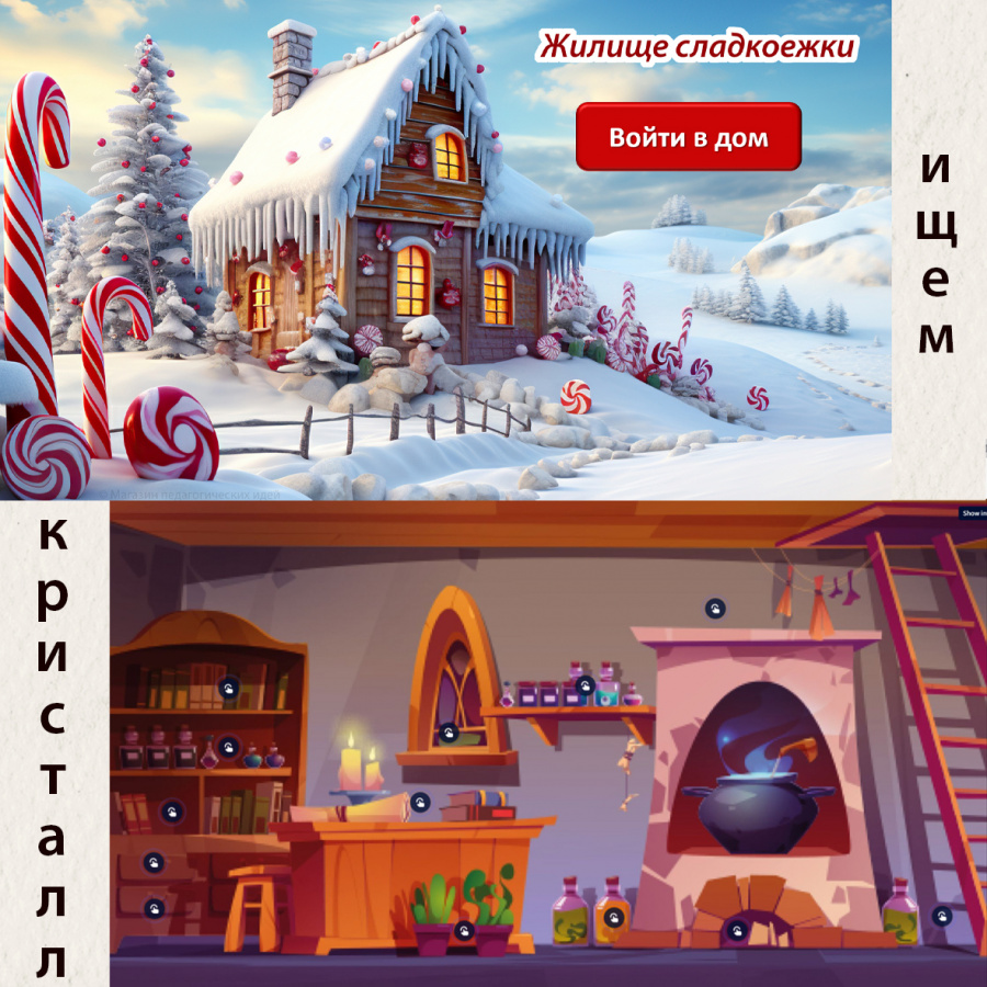 - Интерактивная комната с клиабельными зонами для поиска кристалла (страница в интернете - посмотреть можно здесь)