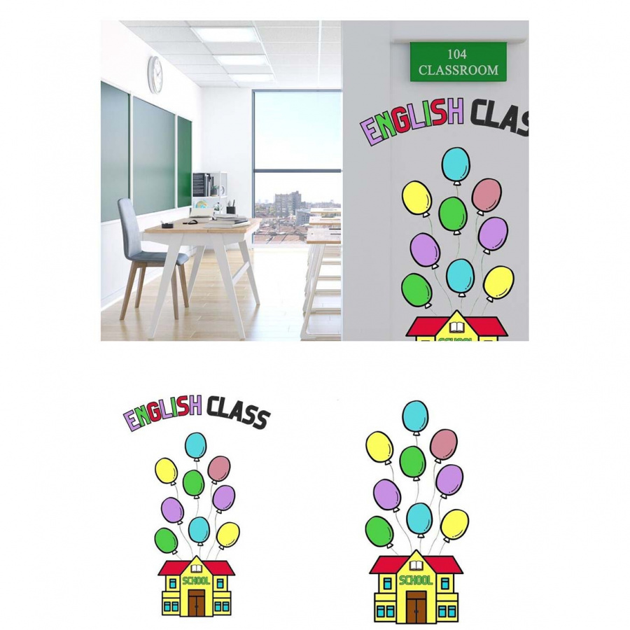 Можно задекорировать дверь снаружи или изнутри, доску или просто свободное пространство стены. Здание символизирует школу, а шары - ее учеников. На каждый шар можно приклеить имя и/или фото ученика.