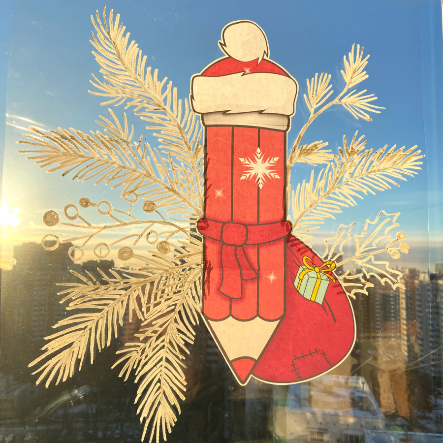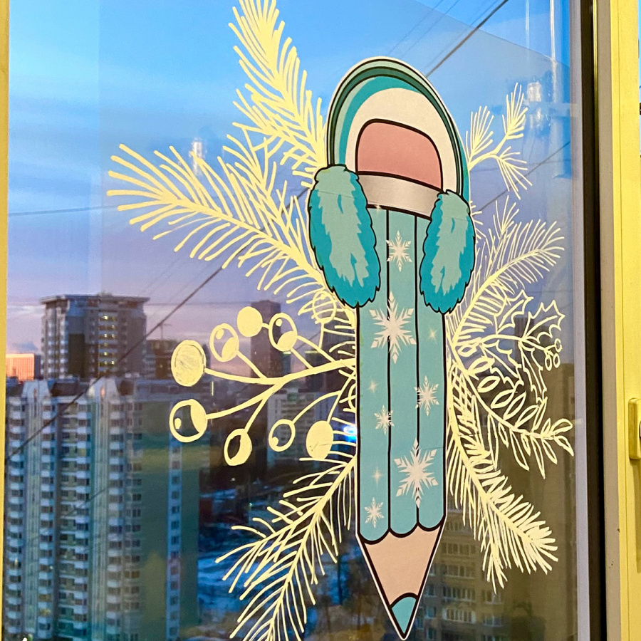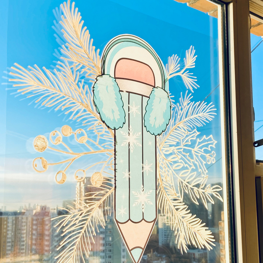 Этот декор выглядит профессионально, словно художник в кофейне оформил окно. Для того, чтобы Вы смогли украсить окно за 15 мин, я работала неделю. И у меня получилось! Никакой возни, очень быстро, просто и эффектный результат. Ну, и милейшие новогодние карандаши - специально для Вашего класса.