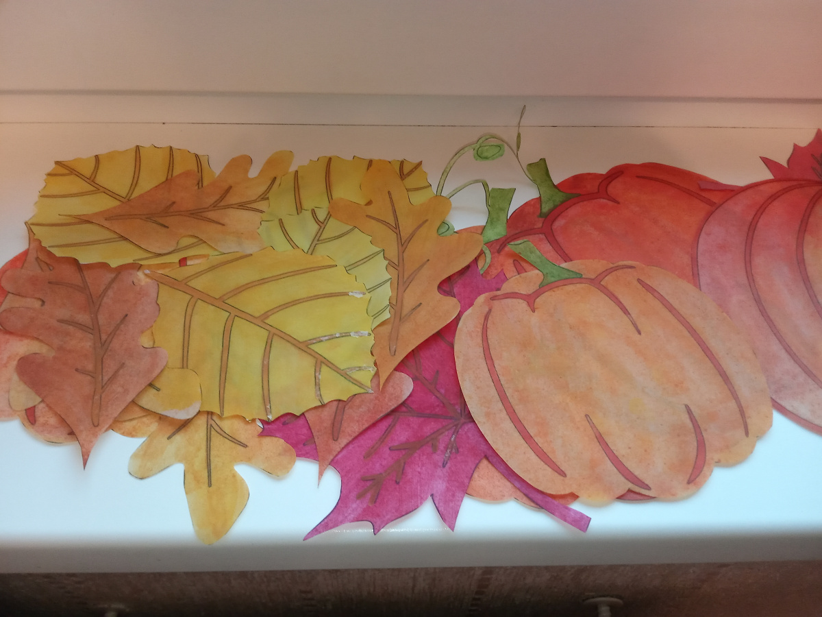 Как долго декор продержится на окне? Несколько месяцев точно может! Только нужно учитывать, что весной и летом, на ярком свету фломастеры будут выгорать. Свободные края бумаги, даже промасленной через несколько недель станут скручиваться, но их можно подклеивать по мере необходимости.