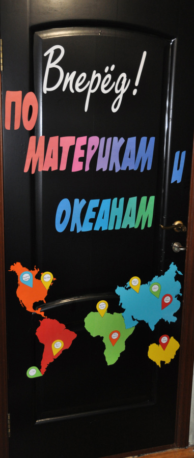 Этот декор двери подойдет как для кабинета географии, так и для начальных классов в период изучения материков на уроках окружающего мира.