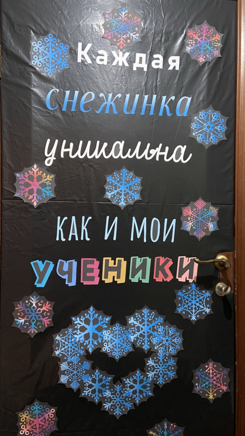 Эта дверь сделана специально для зимних учебных дней. Она будет хороша и в суровом январе, и в феврале, и в ожидании Нового Года. Пусть наши ученики знают, как важны для нас!