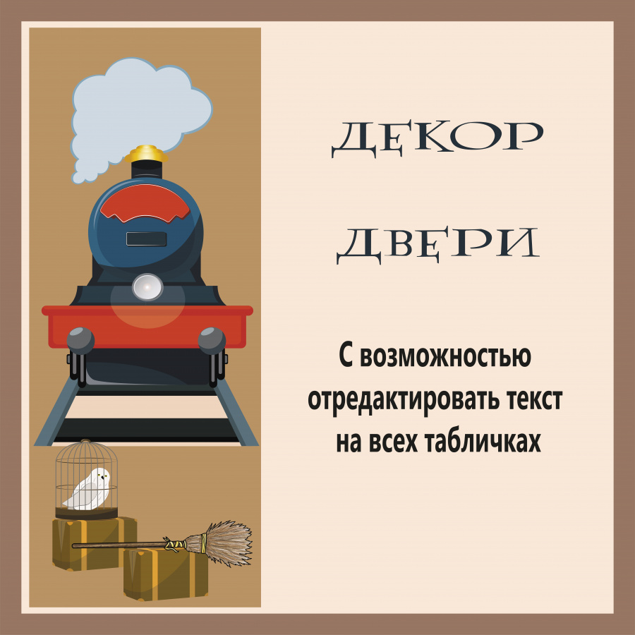 • Дополнительные элементы декора (чемодан, клетка с совой, метла) с надписями и без.