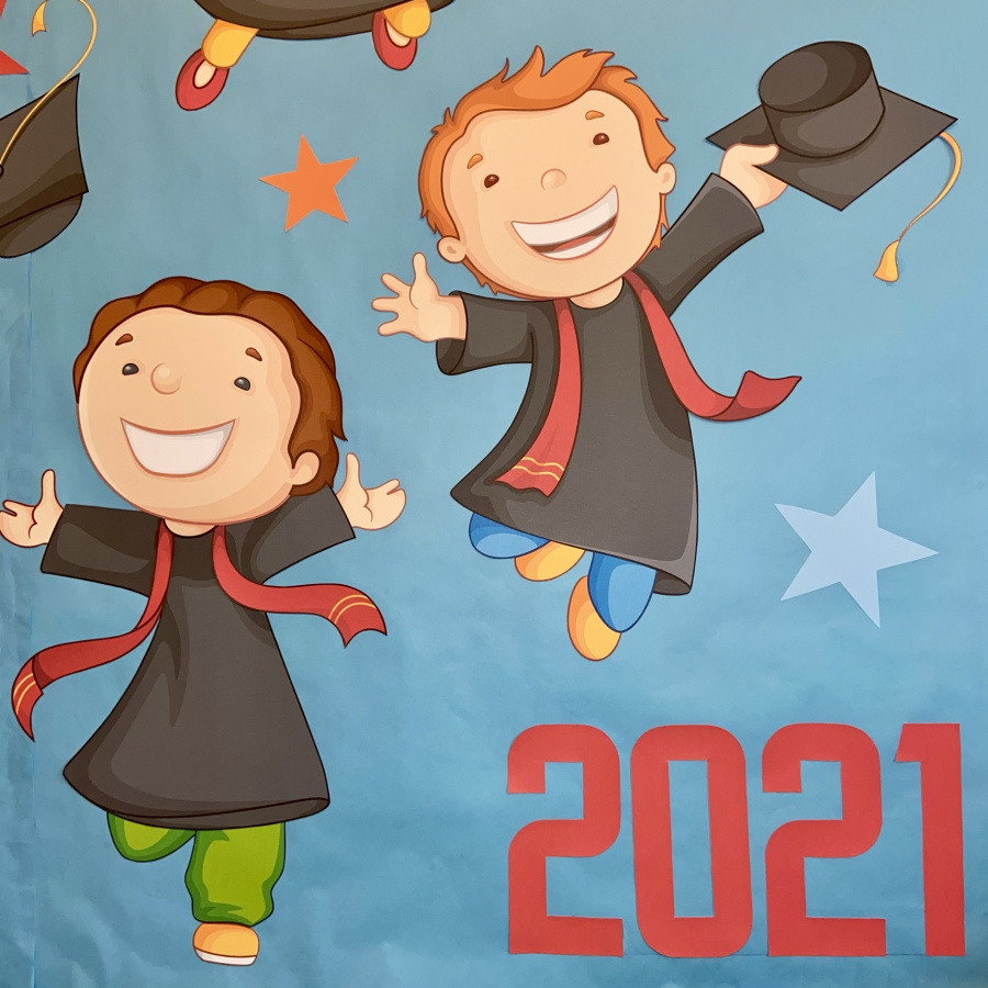 Декор специально для выпускного в начальной школе: яркий, задорный - глядя на его так и хочется улыбаться! он хорош на любом фоне - хоть на голубой крафт-бумаге, хоть на черной мульчирующей пленке, хоть на белой пластиковой поверхности, хоть на деревянной двери без основы для декора.