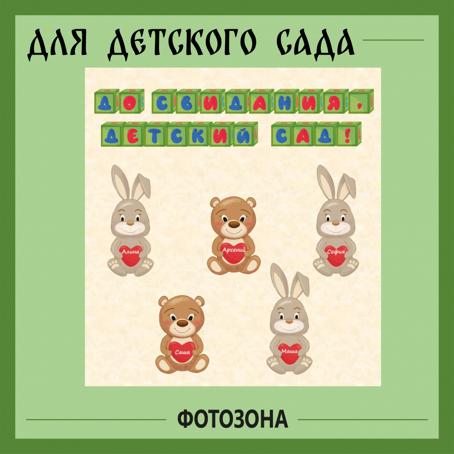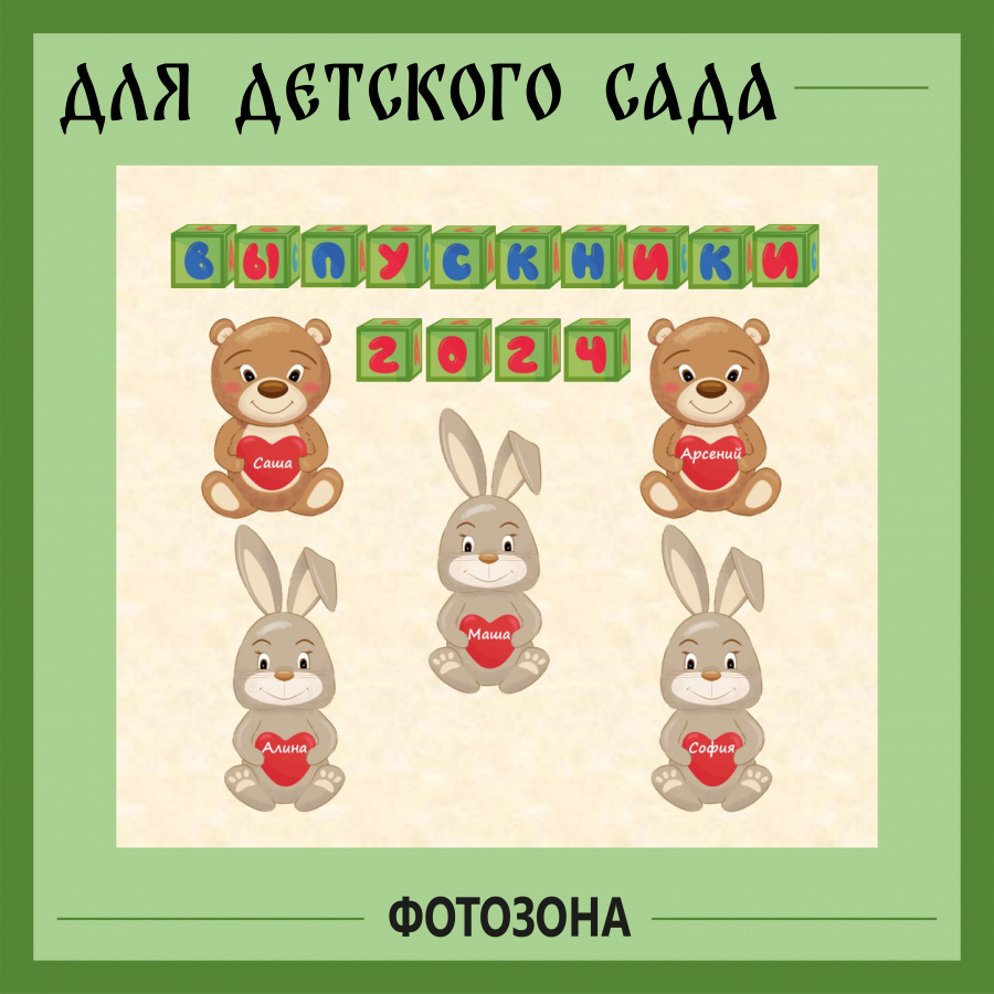 - иллюстрации медведя и зайца с именами выпускников или воспитателей;