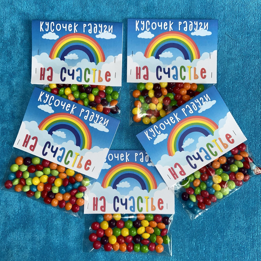 Этикетки "Кусочек радуги на счастье" - это продукт в электронном виде (файл PDF). Скачать материалы можно в личном кабинете - сразу после оплаты или в любое удобное время.