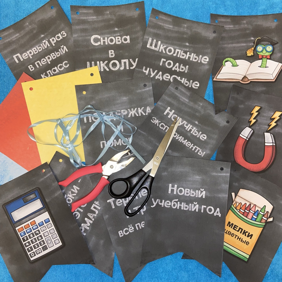 - Флажки для свободного творчества (ребята смогут на них нарисовать те символы учебного года, которые захотят ИЛИ можно распечатать эти флажки на цветной бумаге)