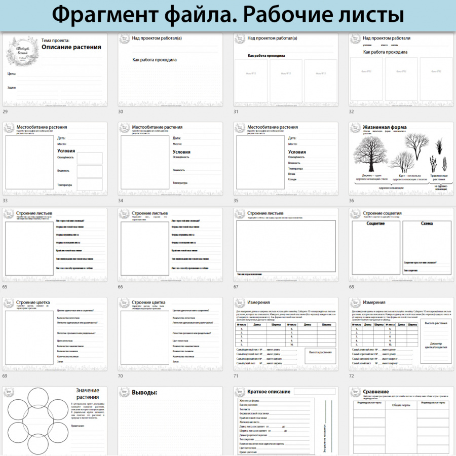 - пособие для учащихся (24 рабочих листа с инструкциями для проведения исследования, из которых впоследствии собирается папка или баннер для стендовой защиты)