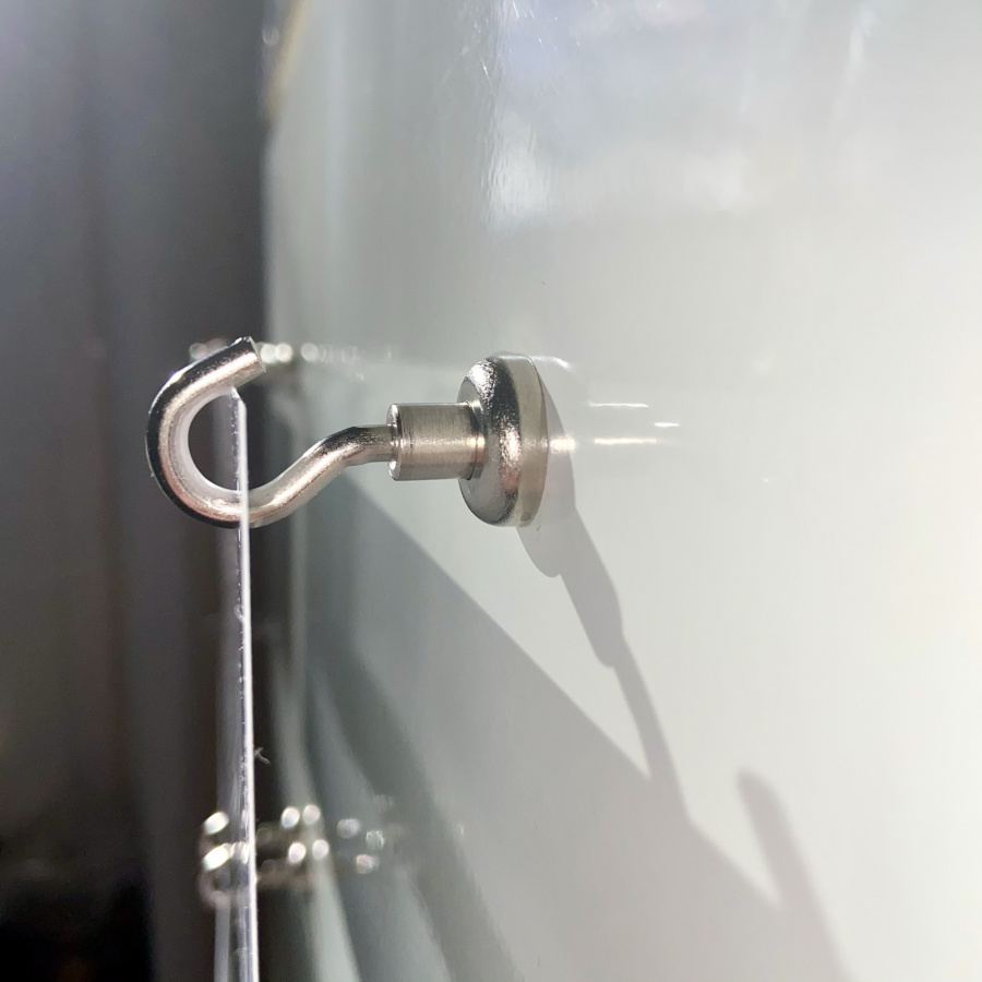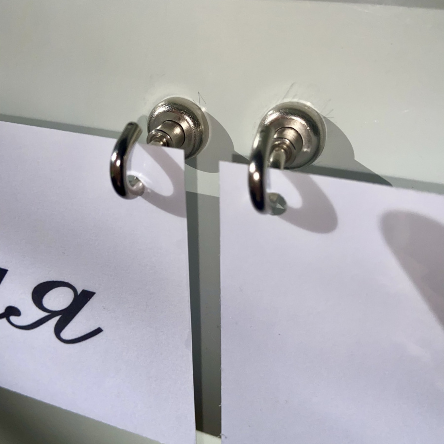 Карточки с надписями можно крепить с помощью магнитов в пластиковых капсулах или надевать их на магнитные крючки - выбирайте, как Вам нравится больше.