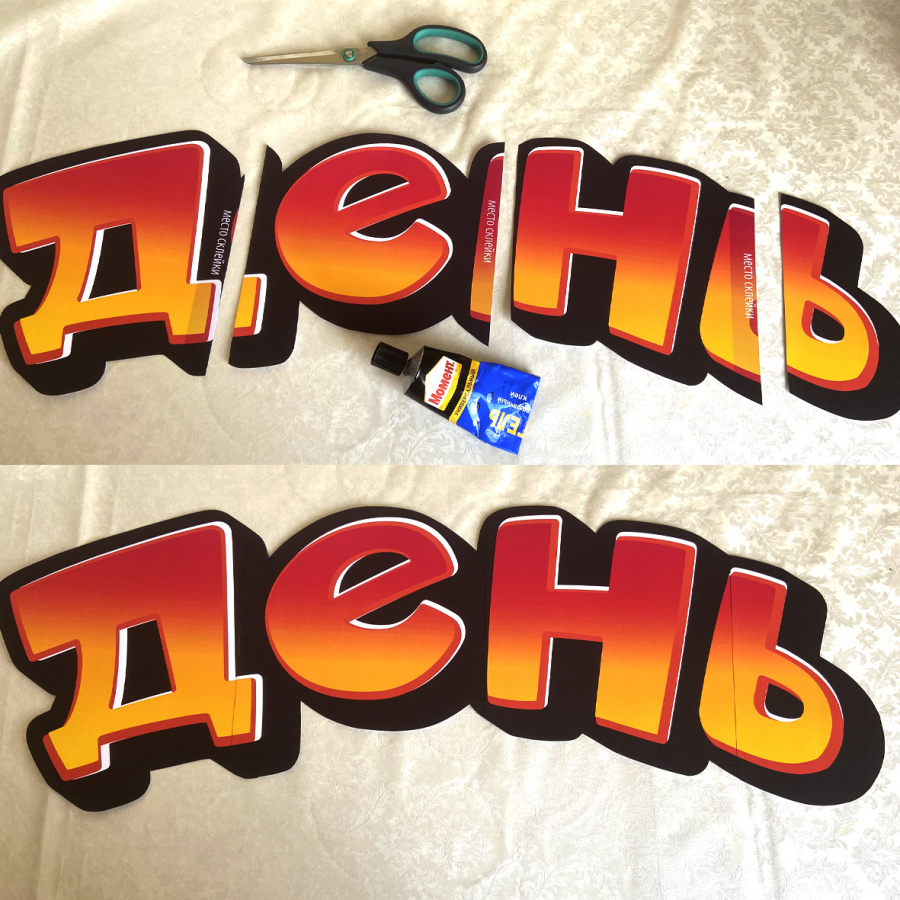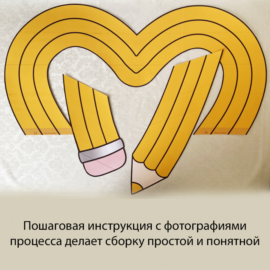 Сердце имеет размеры 75*75 см и, несмотря на сложную форму и черные линии, склеивается легко и четко по инструкции. Надписи на подложках, чтобы не пришлось вырезать мелкие детали и прорезать отверстия внутри букв.