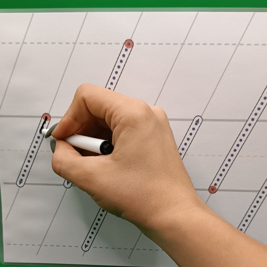 Но в этом случае рекомендую использовать отдельные карточки для учеников (найти их можно здесь: https://ideateach.org/products/@teacher_energizer-c129034278) . Они меньшего размера, поэтому детям будет проще обводить букву, сидя за партой.