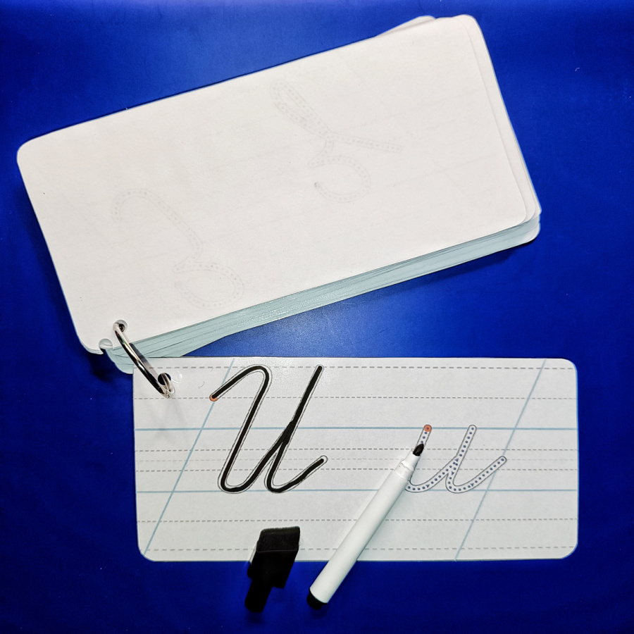 Карточки предназначены для многоразовой работы при помощи маркера. Для этого листы с буквами нужно предварительно заламинировать или поместить в специальный файл «пиши-стирай». Таких много на маркетплейсах, и обычно в комплекте с ним уже идут маркеры на водной основе.
