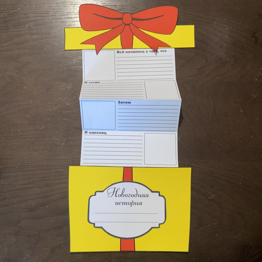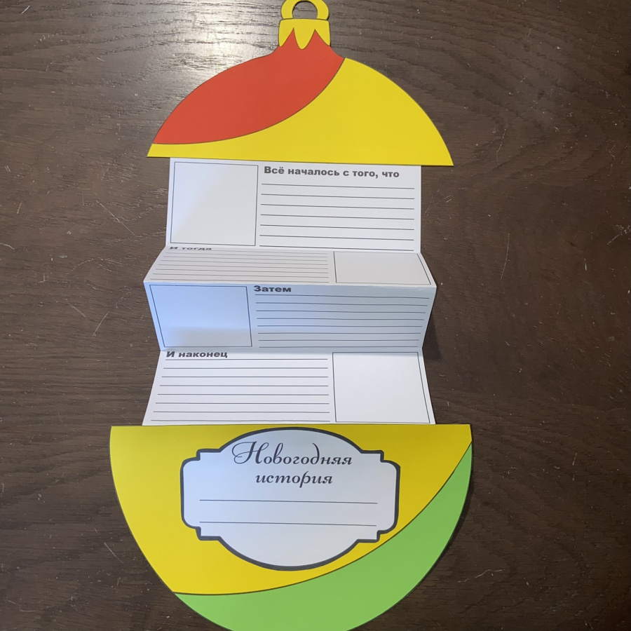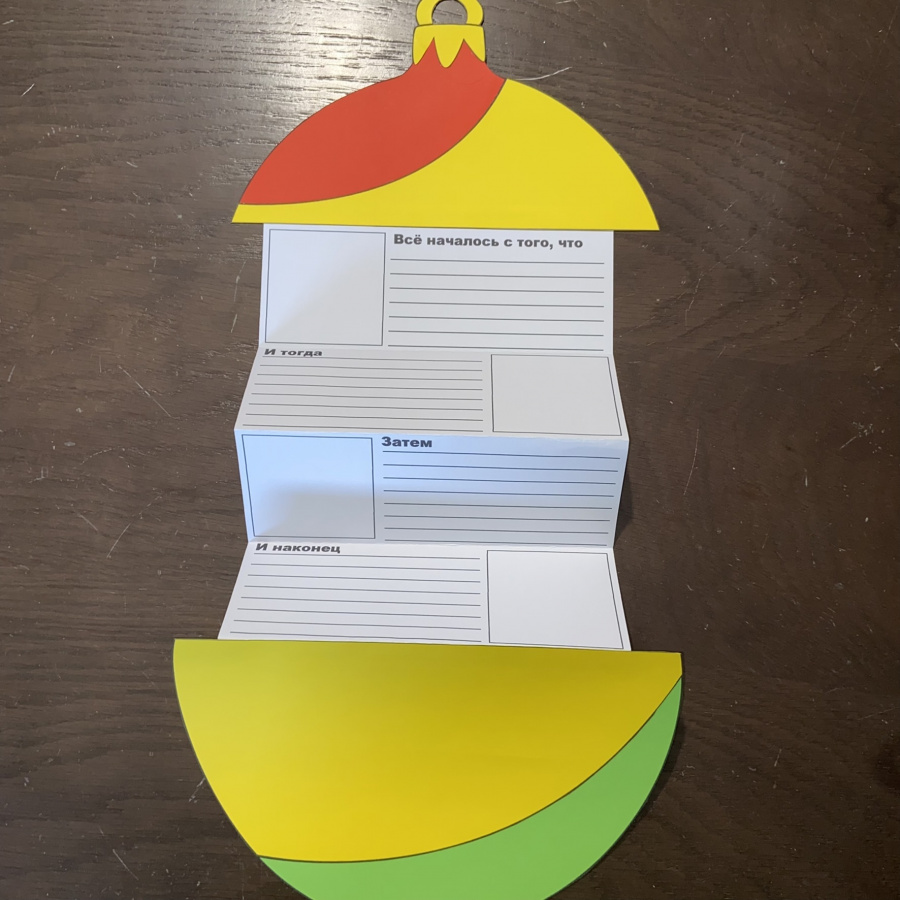 Дети любят создавать собственные истории и оформлять их в виде книжек. Книжка-гармошка с обложкой в виде новогодней ёлки, ёлочного шара или подарка – отличный способ мотивировать своих учеников написать собственную историю.