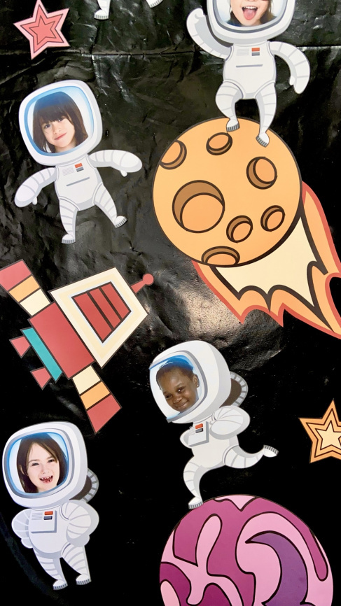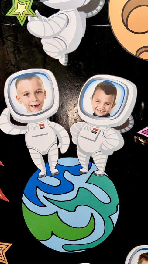 Особую прелесть этому декору придают космонавты с фотографиями учеников класса в шлеме скафандра. Фото Вы вставите в шаблон в три клика! Так быстро, и так просто. Инструкция прилагается.