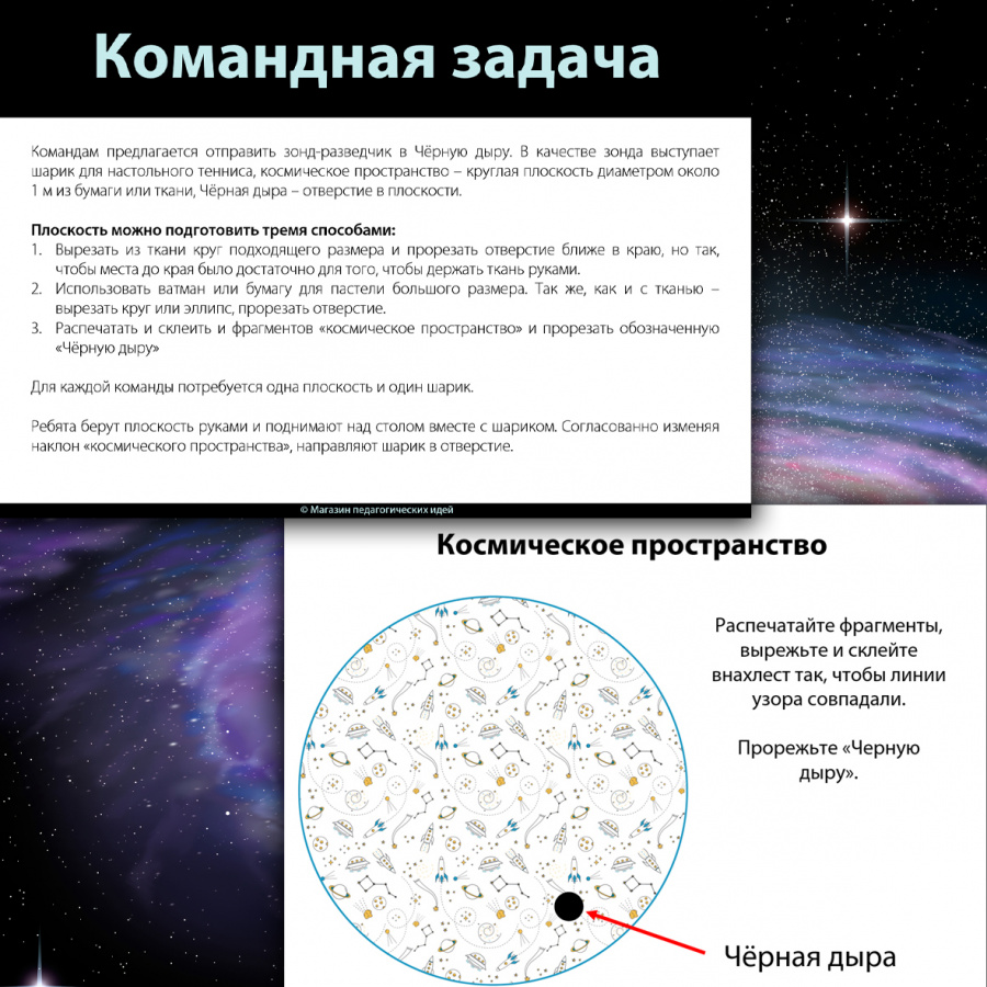 - Раздаточные материалы, включая шаблон для печати "Космического пространства с Чёрной дырой"