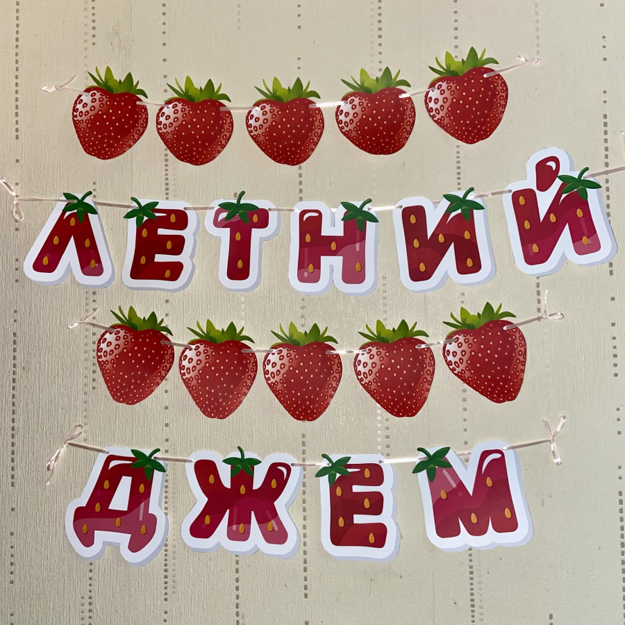 - Надпись "Летний джем" и клубнички-флажки для оформления класса (сейчас и/или в начале учебного года, когда соберемся все вместе, чтобы вспомнить лето и обсудить впечатления).