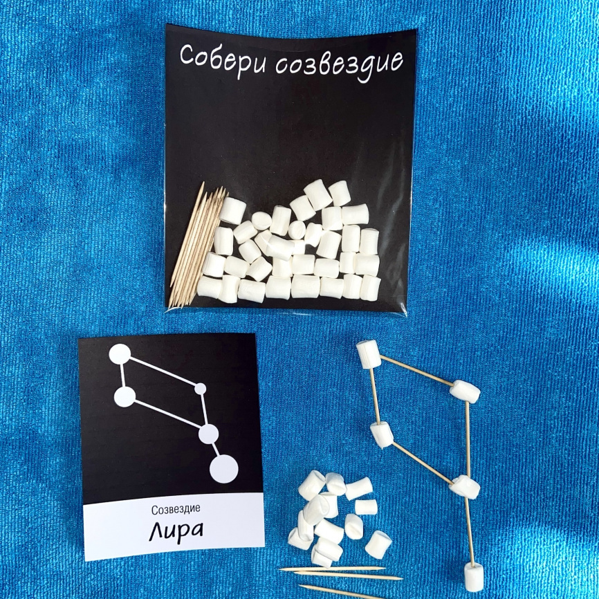 6. Моделирование созвездий с помощью маршмеллоу (набухшего гороха/нута ) и зубочисток.