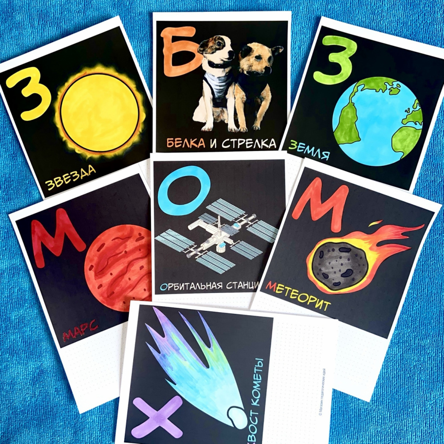 Так как в комплекте карточек много, что даже в большом классе можно избежать повторения сообщений. Устные сообщения по 1 минуте можно представлять на уроке или внеклассном мероприятии в формате мини-конференции, или посетить ребят из 1-2 класса и рассказать и показать им свой "Космический алфавит".