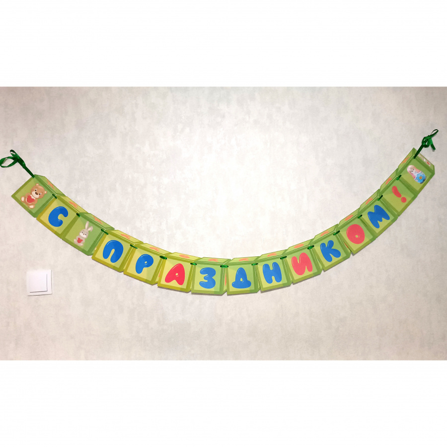 Растяжки в электронном виде чаще всего имеют форму всевозможных флажков. Мне же хотелось сделать растяжку, которая своим оформлением будет интересна младшим школьникам и воспитанникам детских садов. Так появился набор кубиков БЕЗ готовых фраз.