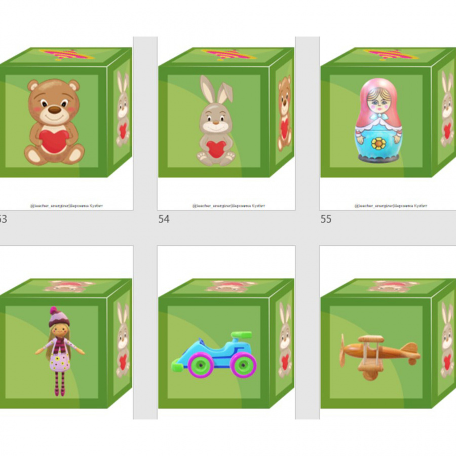 В наборе представлены кубики для цветной печати со следующим содержанием: