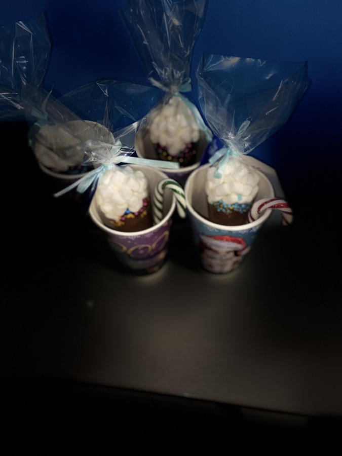 На класс нужно 2-3 банки какао "Несквик" - его не нужно варить, достаточно растворить в теплой воде (или молоке, если дети будут готовить какао дома). Так же Вам потребуются кондитерские посыпки и маршмеллоу (я использую мелкие, но можно и обычного размера).