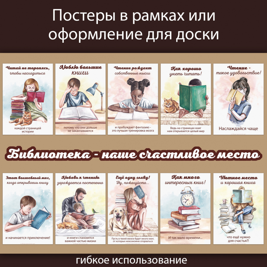 Постеры для читательского уголка или библиотеки класса - добрые акварельные рисунки в высоком качестве, мне они напоминают картинки из букваря моего детства, такие светлые, уютные.