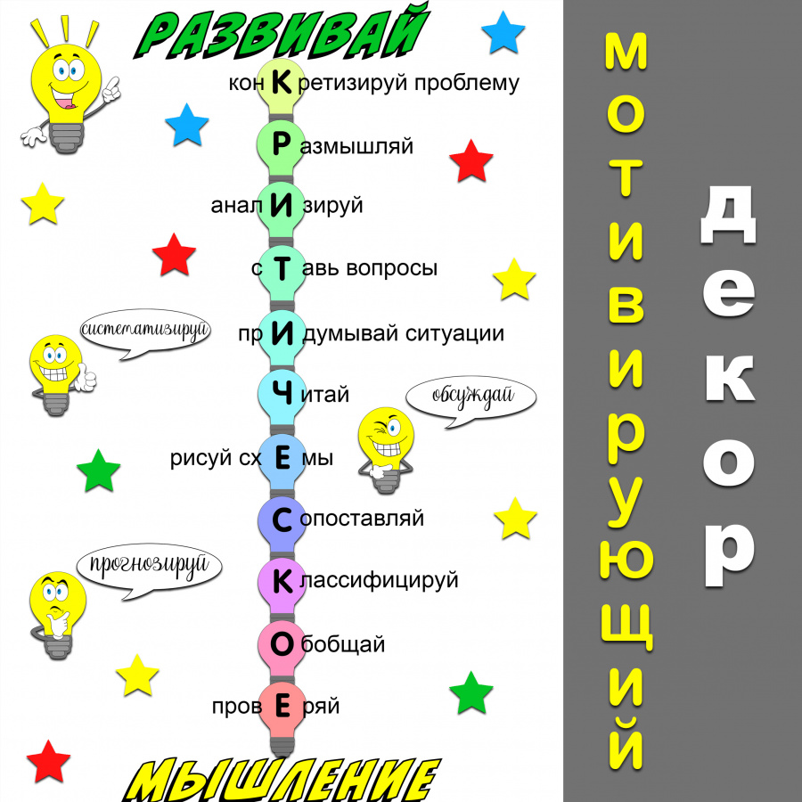 Мотивирующий декор "Развивай критическое мышление" - это продукт в электронном виде (файл PDF). Скачать можно в личном кабинете - сразу после оплаты и в любое время.