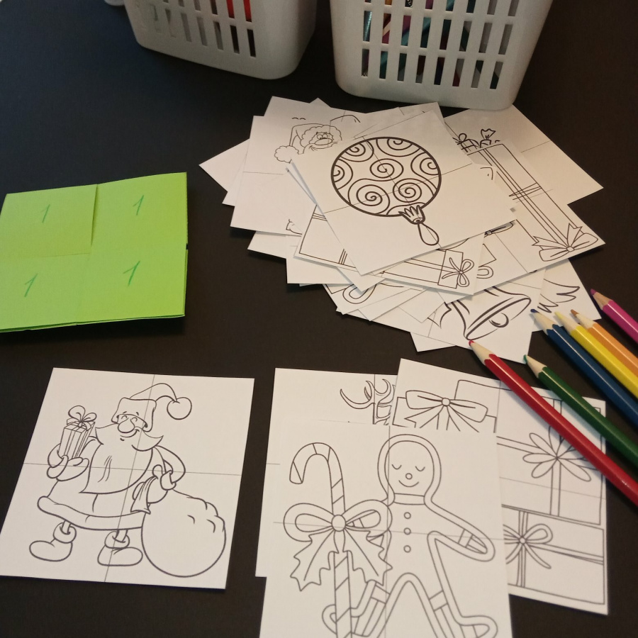 - распечатанные контурные рисунки (4 листа на группу из 6 человек)