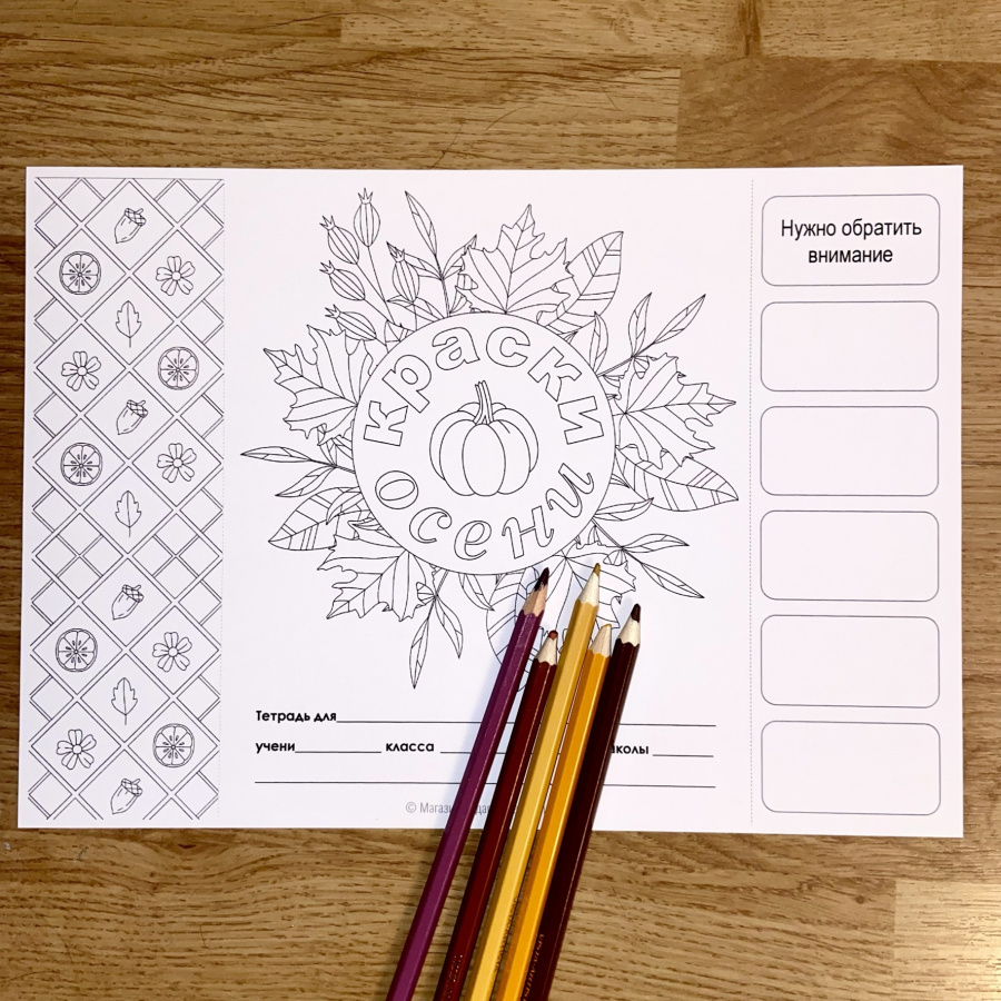 Обложки-раскраски для тетрадей_Краски осени - это продукт в электронном виде (файлы PDF). Скачать можно в личном кабинете - сразу после оплаты и в любое удобное время.