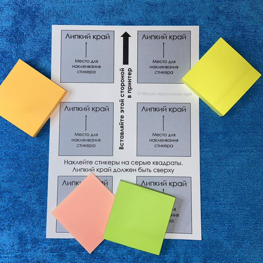 Просто распечатайте основу для стикеров на листе А4, наклейте цветные стикеры, распечатайте на них нужные Вам надписи. Если используете струйную печать, до дайте краске высохнуть несколько минут. Ни капли цветных чернил!