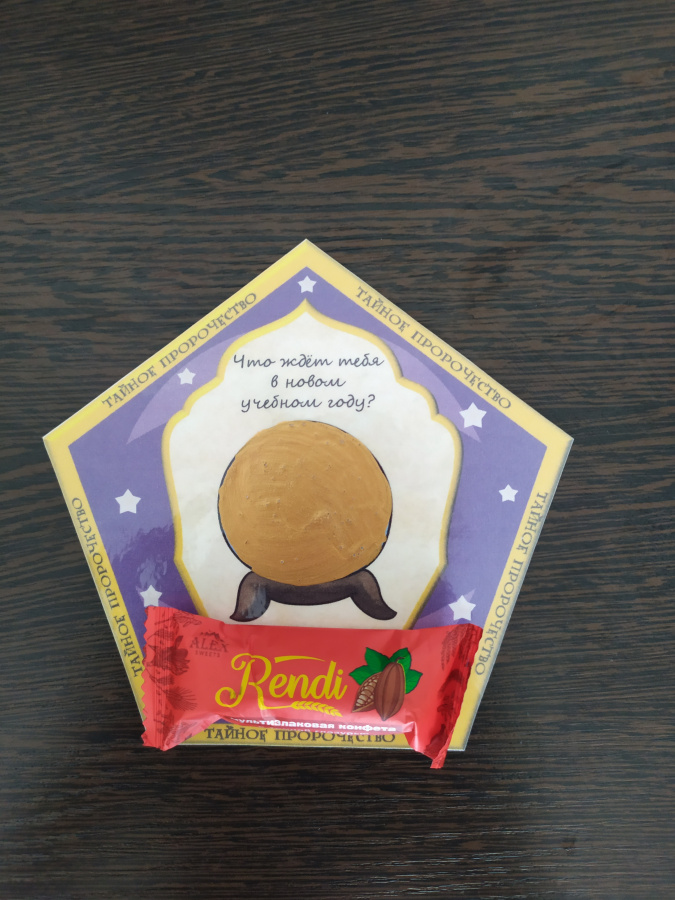 В начале учебного года многие учителя дарят небольшие подарки своим ученикам. Открытки «Тайное пророчество» точно понравятся ученикам любого возраста. Здесь и скрытая в предсказаниях мотивация, и элемент волшебства (пророчество под скретч-слоем), и сладкий приз.