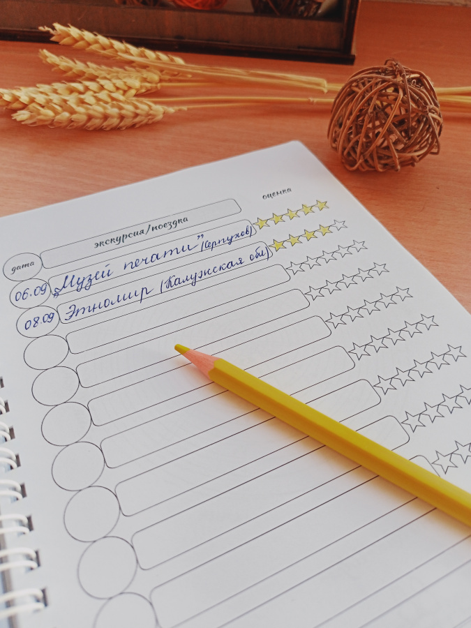 6. Развороты с таблицами, которые помогают отслеживать и структурировать победы в конкурсах и олимпиадах.