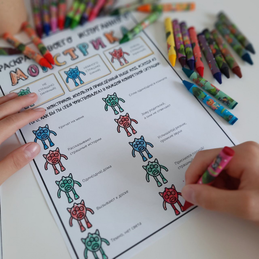 ? Cтраницы "Раскрась своего монстрика" (с указанием того, что заставляет их чувствовать эту эмоцию) (3)