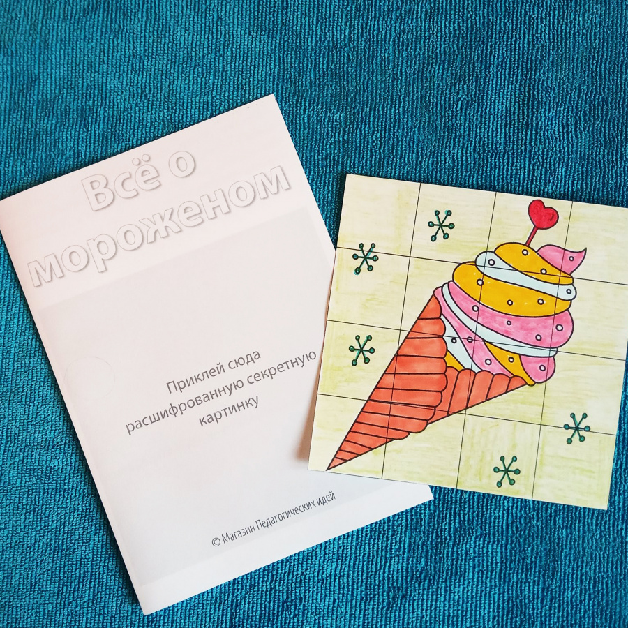 Кроме того, эти задания можно использовать даже при дистанционном обучении - для этого используйте QR-коды и Google-формы (не входят в комплект). В комплект также входит файл, с помощью которого можно сделать мини-книжку о мороженом - с рассекреченной картинкой на обложке - получится целый мини-проект.