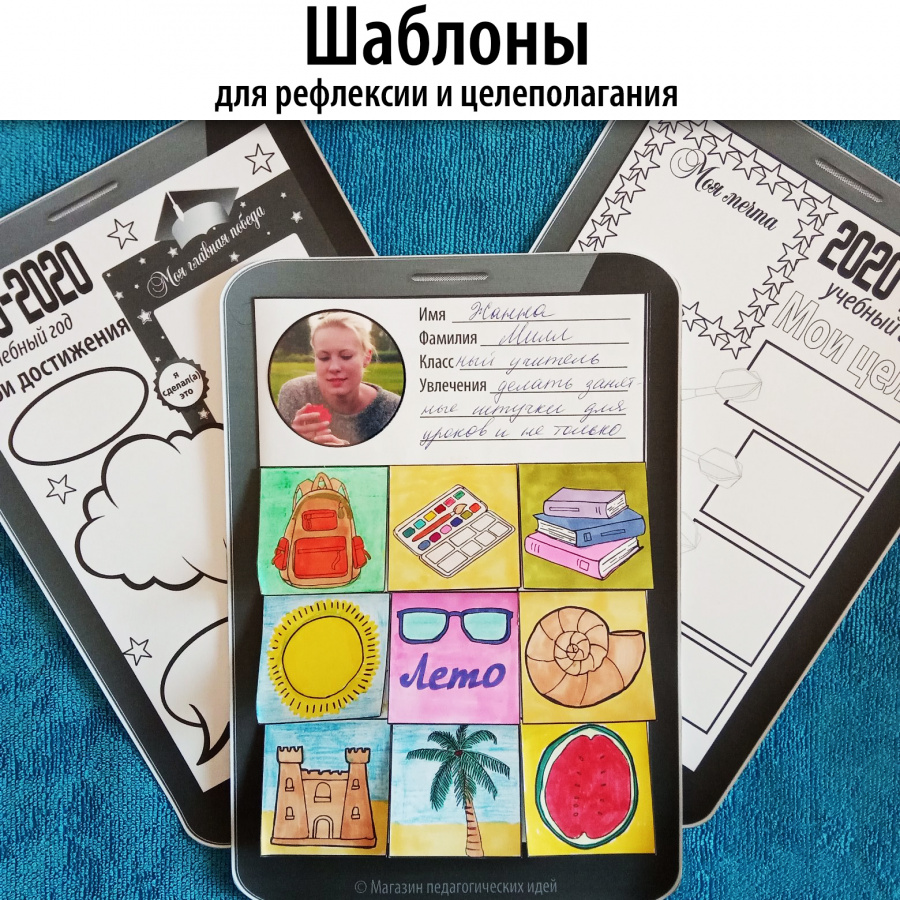Шаблоны для рефлексии и целеполагания - это продукт в электронном виде (PDF). Вы сможете распечатать столько смартфонов, сколько Вам потребуется. Эти шаблоны можно использовать не один год, т.к. учебный год можно можно редактировать!