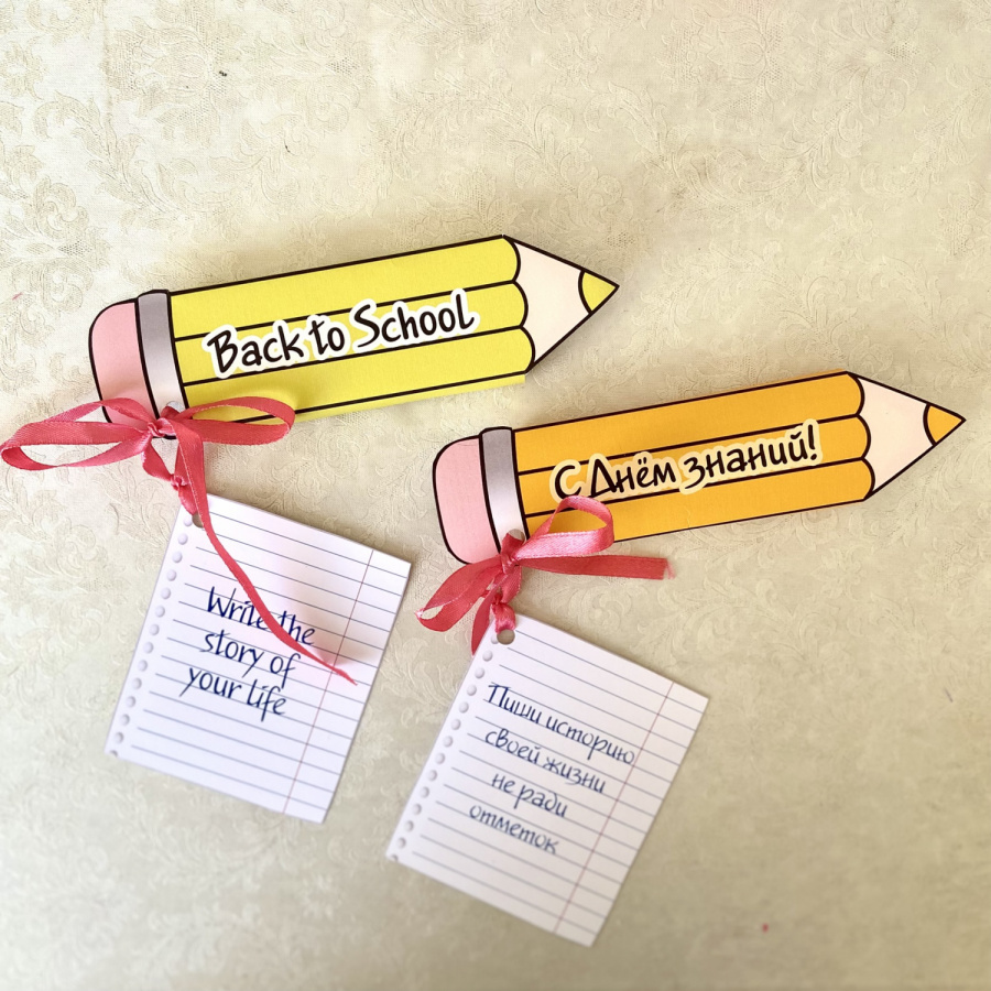 Надписи на карандашах "С Днём знаний!", "Back to School" и "Welcome back".