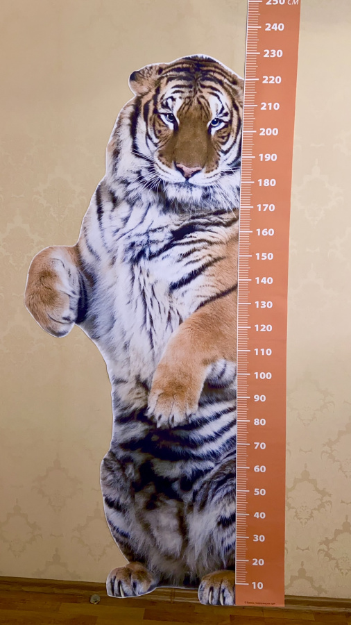Ростомер с тигром, стоящим на задних лапах - реальный размер: можно сравнить свой рост с длиной тела амурского тигра, определить, на сколько нужно еще вырасти, чтобы достать ему до передней лапы, до плеча, до нижней челюсти.