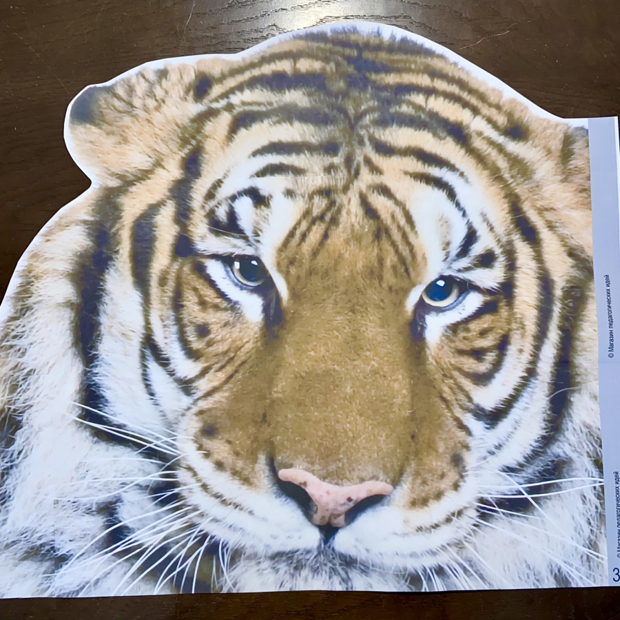 Несмотря на то, что ростомер 2,5 м, а тигр 2,3 м в высоту, вся печать на листах А4, монтажная схема прилагается. Сборка доступна без специальных навыков. Качество иллюстрации соответствует крупному декору для оформления пространств вне класса - коридоров и рекреаций.