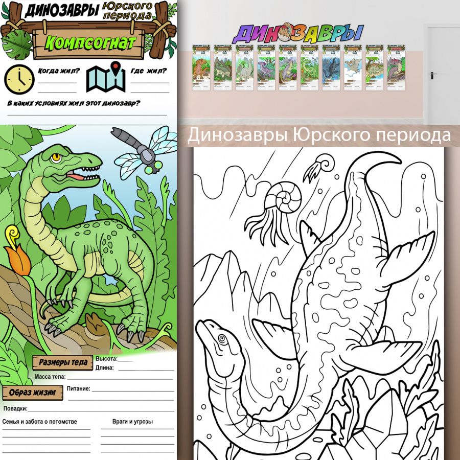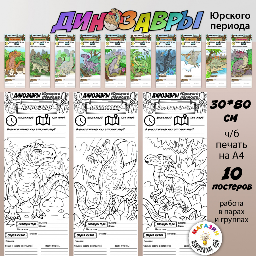 В полный рост "Динозавры Юрского периода"_постеры для коллективной работы - это продукт в электронном виде (файлы PDF). Скачать можно в личном кабинете - сразу после оплаты или в любое удобное время.