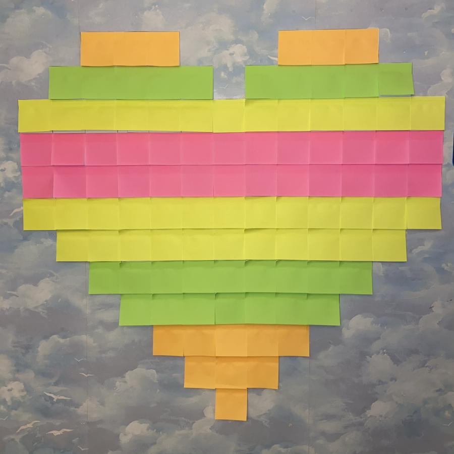 Данные материалы предназначены ДЛЯ КОРИДОРА, РЕКРЕАЦИИ, ХОЛЛА: высота 1 м, ширина 2,5 м. Одно сердце рассчитано на наклеивание 104 стикеров, есть разметка. Стикеры 7,5*7,5 см (7,6*7,6 тоже подходят).
