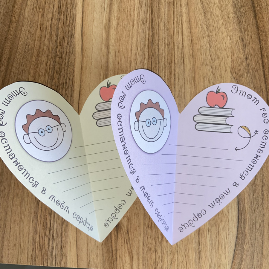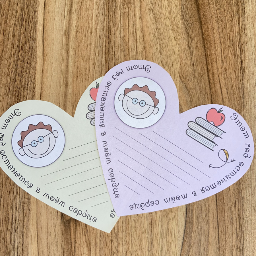Завершить учебный год, который стал путешествием к знаниям, можно ярко и необычно. Используйте воздушный шар-дисплей, на который Ваши ученики смогут прикрепить сердца с впечатлениями об учебном годе, которые останутся в их памяти и сердце. Шаблоны в форме сердца с надписью "Наш класс останется в моём сердце" и "Этот год останется в моём сердце" подойдут для итогового мероприятия в конце учебного года, в том числе и в выпускных классах. Если кто-то из учеников уходит из класса, то можно подарить ему эти сердца на память. А если с классом прощается учитель, то это будет прекрасная память о ребятах из класса.