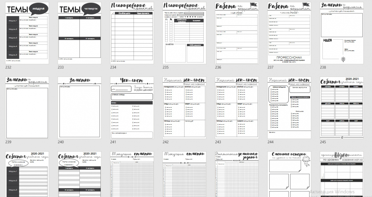 Планер состоит из двух частей: классное руководство и планирование учителя-предметника. Он универсальный - подходит и для учителей среднего и старшего звена, и для учителей начальной школы - 1-11 классы. Я старалась сделать его удобным, трансформируемым, таким, чтобы каждый мог собрать то, что нужно именно ему.