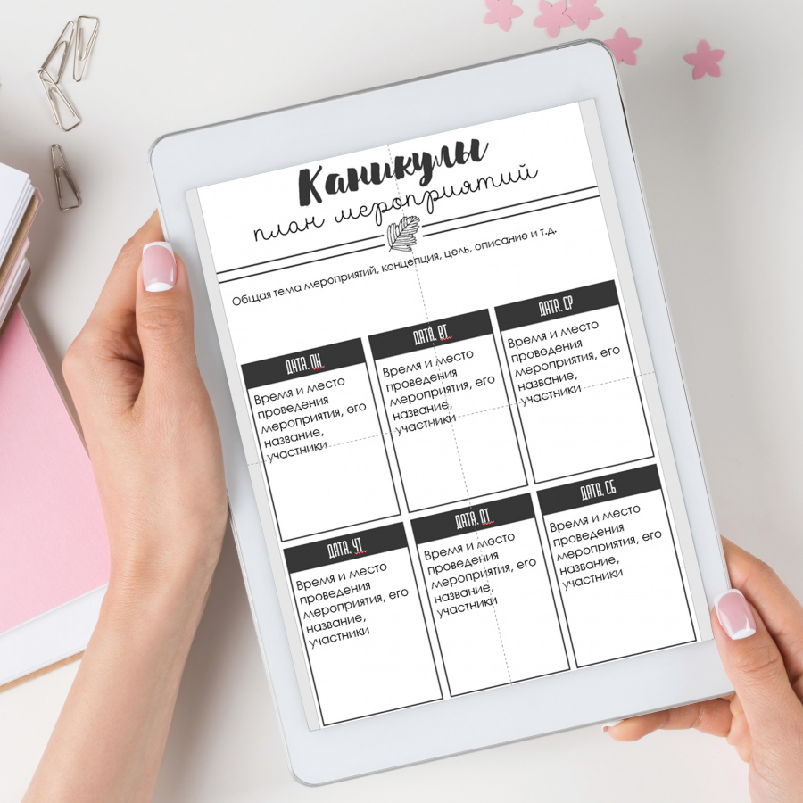 Планер - это продукт в электронном виде. В комплект входит файл PDF для распечатывания от руки и файл PowerPoint, в который можно вносить изменения на компьютере или планшете. Его даже распечатывать необязательно: можно заполнять прямо в электронном виде и хранить на компьютере или в облаке.
